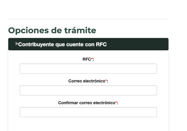 Deberás proporcionar tu RFC, correo electrónico y número telefónico.
